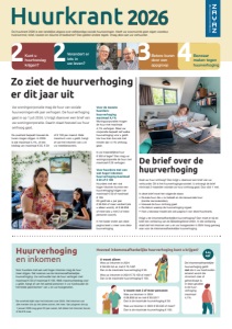 Kunt u huurtoeslag krijgen? Huurkrant 2026 De Huurkrant 2026 is een landelijke uitgave over zelfstandige sociale huurwoningen. Heeft uw woonruimte geen eigen voordeur, huisnummer, toilet, keuken en douche of badkamer? Dan gelden andere regels. Vraag deze aan uw verhuurder. Zo ziet de huurverhoging er dit jaar uit Uw woningcorporatie mag de huur van sociale huurwoningen elk jaar verhogen. De huurverhoging gaat in op 1 juli 2026. U krijgt daarover een brief van uw woningcorporatie. Daarin staat hoeveel uw huur omhoog gaat. De overheid bepaalt hoeveel de huren mogen stijgen. In 2026 is dat maximaal 4,1%, of een bedrag van maximaal € 25, € 50 Huurverhoging en inkomen * De overheid kijkt naar het inkomen over 2024. Het inkomen van alle mensen die op het adres wonen, telt mee. Van jongeren die op 1 januari 2026 nog geen 23 jaar waren, telt alleen het inkomen boven € 26.819 mee. Voor huurders met een wat hoger inkomen mag de huur meer stijgen. Dat noemen we de inkomensafhankelijke huurverhoging. Uw verhuurder kan de huur verhogen met maximaal € 50 of maximaal € 100. Welk maximumbedrag voor u geldt, hangt af van het aantal personen in uw huishouden én het totale jaarinkomen* van u en uw huisgenoten. Hoeveel inkomensafhankelijke huurverhoging kunt u krijgen? U woont alleen Was uw inkomen in 2024 € 59.504 tot en met € 70.149? Dan is de maximale huurverhoging € 50. Was uw inkomen in 2024 € 70.150 of meer? Dan is de maximale huurverhoging € 100. U woont met 2 of meer personen Was uw inkomen in 2024 € 68.858 tot en met € 93.531? Dan is de maximale huurverhoging € 50. Was uw inkomen in 2024 € 93.532 of meer? Dan is de maximale huurverhoging € 100. De inkomensafhankelijke huurverhoging geldt niet als in uw huishouden iemand woont die chronisch ziek of gehandicapt is. In deze gevallen is de huur- verhoging maximaal 4,1%. Let op! De brief over de huurverhoging Gaat uw huur omhoog? Dan krijgt u daarover een brief van uw verhuurder. Dit is het huurverhogingsvoorstel. U ontvangt de brief minimaal 2 maanden voordat uw huur omhoog gaat. Dus vóór 1 mei. In deze brief moet het volgende staan: • De kale huur die u nu betaalt en de nieuwe kale huur (zonder servicekosten). • Hoeveel de huur omhoog gaat. • De datum waarop de huurverhoging ingaat. • Hoe u bezwaar maakt (zie ook pagina 4 van deze Huurkrant). Krijgt u de inkomensafhankelijke huurverhoging? Dan moet er bij de brief een verklaring van de Belastingdienst zitten. In die verklaring staat dat het inkomen van u en uw huisgenoten in 2024 hoog genoeg was voor de inkomensafhankelijke huurverhoging. Verandert er iets in uw leven? 4Bezwaar maken tegen huurverhoging Betere buren door een appgroep of € 100 per maand. Welk maximum voor u geldt, hangt af van het inkomen van u en uw medebewoners. Voor de meeste huurders: huurverhoging maximaal 4,1% Woningcorporaties mogen de huur met maximaal 4,1% verhogen. Maar uw corporatie bepaalt zelf welke huurverhoging voor u geldt. Uw huur kan dus ook met minder dan 4,1% omhoog gaan. Is uw maandelijkse huur € 350 of lager? Dan mag uw woningcorporatie de huur met maximaal € 25 verhogen. Voor huurders met een wat hoger inkomen: huurverhoging maximaal € 50 of € 100 Huurders met een wat hoger inkomen kunnen een huurverhoging krijgen van maximaal € 50 of maximaal € 100. Dit geldt als u per jaar € 59.504 of meer verdient (als u alleen woont), of € 68.858 of meer (als u met 2 of meer personen woont). In het kader onder aan deze pagina leest u meer over deze huurverhoging.