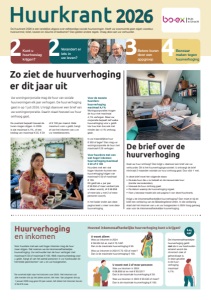 Kunt u huurtoeslag krijgen? Huurkrant 2026 De Huurkrant 2026 is een landelijke uitgave over zelfstandige sociale huurwoningen. Heeft uw woonruimte geen eigen voordeur, huisnummer, toilet, keuken en douche of badkamer? Dan gelden andere regels. Vraag deze aan uw verhuurder. Zo ziet de huurverhoging er dit jaar uit Uw woningcorporatie mag de huur van sociale huurwoningen elk jaar verhogen. De huurverhoging gaat in op 1 juli 2026. U krijgt daarover een brief van uw woningcorporatie. Daarin staat hoeveel uw huur omhoog gaat. De overheid bepaalt hoeveel de huren mogen stijgen. In 2026 is dat maximaal 4,1%, of een bedrag van maximaal € 25, € 50 Huurverhoging en inkomen * De overheid kijkt naar het inkomen over 2024. Het inkomen van alle mensen die op het adres wonen, telt mee. Van jongeren die op 1 januari 2026 nog geen 23 jaar waren, telt alleen het inkomen boven € 26.819 mee. Voor huurders met een wat hoger inkomen mag de huur meer stijgen. Dat noemen we de inkomensafhankelijke huurverhoging. Uw verhuurder kan de huur verhogen met maximaal € 50 of maximaal € 100. Welk maximumbedrag voor u geldt, hangt af van het aantal personen in uw huishouden én het totale jaarinkomen* van u en uw huisgenoten. Hoeveel inkomensafhankelijke huurverhoging kunt u krijgen? U woont alleen Was uw inkomen in 2024 € 59.504 tot en met € 70.149? Dan is de maximale huurverhoging € 50. Was uw inkomen in 2024 € 70.150 of meer? Dan is de maximale huurverhoging € 100. U woont met 2 of meer personen Was uw inkomen in 2024 € 68.858 tot en met € 93.531? Dan is de maximale huurverhoging € 50. Was uw inkomen in 2024 € 93.532 of meer? Dan is de maximale huurverhoging € 100. De inkomensafhankelijke huurverhoging geldt niet als in uw huishouden iemand woont die chronisch ziek of gehandicapt is. In deze gevallen is de huur- verhoging maximaal 4,1%. Let op! De brief over de huurverhoging Gaat uw huur omhoog? Dan krijgt u daarover een brief van uw verhuurder. Dit is het huurverhogingsvoorstel. U ontvangt de brief minimaal 2 maanden voordat uw huur omhoog gaat. Dus vóór 1 mei. In deze brief moet het volgende staan: • De kale huur die u nu betaalt en de nieuwe kale huur (zonder servicekosten). • Hoeveel de huur omhoog gaat. • De datum waarop de huurverhoging ingaat. • Hoe u bezwaar maakt (zie ook pagina 4 van deze Huurkrant). Krijgt u de inkomensafhankelijke huurverhoging? Dan moet er bij de brief een verklaring van de Belastingdienst zitten. In die verklaring staat dat het inkomen van u en uw huisgenoten in 2024 hoog genoeg was voor de inkomensafhankelijke huurverhoging. Verandert er iets in uw leven? 4Bezwaar maken tegen huurverhoging Betere buren door een appgroep of € 100 per maand. Welk maximum voor u geldt, hangt af van het inkomen van u en uw medebewoners. Voor de meeste huurders: huurverhoging maximaal 4,1% Woningcorporaties mogen de huur met maximaal 4,1% verhogen. Maar uw corporatie bepaalt zelf welke huurverhoging voor u geldt. Uw huur kan dus ook met minder dan 4,1% omhoog gaan. Is uw maandelijkse huur € 350 of lager? Dan mag uw woningcorporatie de huur met maximaal € 25 verhogen. Voor huurders met een wat hoger inkomen: huurverhoging maximaal € 50 of € 100 Huurders met een wat hoger inkomen kunnen een huurverhoging krijgen van maximaal € 50 of maximaal € 100. Dit geldt als u per jaar € 59.504 of meer verdient (als u alleen woont), of € 68.858 of meer (als u met 2 of meer personen woont). In het kader onder aan deze pagina leest u meer over deze huurverhoging.