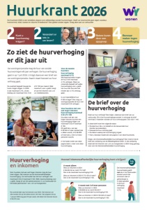 Kunt u huurtoeslag krijgen? Huurkrant 2026 De Huurkrant 2026 is een landelijke uitgave over zelfstandige sociale huurwoningen. Heeft uw woonruimte geen eigen voordeur, huisnummer, toilet, keuken en douche of badkamer? Dan gelden andere regels. Vraag deze aan uw verhuurder. Zo ziet de huurverhoging er dit jaar uit Uw woningcorporatie mag de huur van sociale huurwoningen elk jaar verhogen. De huurverhoging gaat in op 1 juli 2026. U krijgt daarover een brief van uw woningcorporatie. Daarin staat hoeveel uw huur omhoog gaat. De overheid bepaalt hoeveel de huren mogen stijgen. In 2026 is dat maximaal 4,1%, of een bedrag van maximaal € 25, € 50 Huurverhoging en inkomen * De overheid kijkt naar het inkomen over 2024. Het inkomen van alle mensen die op het adres wonen, telt mee. Van jongeren die op 1 januari 2026 nog geen 23 jaar waren, telt alleen het inkomen boven € 26.819 mee. Voor huurders met een wat hoger inkomen mag de huur meer stijgen. Dat noemen we de inkomensafhankelijke huurverhoging. Uw verhuurder kan de huur verhogen met maximaal € 50 of maximaal € 100. Welk maximumbedrag voor u geldt, hangt af van het aantal personen in uw huishouden én het totale jaarinkomen* van u en uw huisgenoten. Hoeveel inkomensafhankelijke huurverhoging kunt u krijgen? U woont alleen Was uw inkomen in 2024 € 59.504 tot en met € 70.149? Dan is de maximale huurverhoging € 50. Was uw inkomen in 2024 € 70.150 of meer? Dan is de maximale huurverhoging € 100. U woont met 2 of meer personen Was uw inkomen in 2024 € 68.858 tot en met € 93.531? Dan is de maximale huurverhoging € 50. Was uw inkomen in 2024 € 93.532 of meer? Dan is de maximale huurverhoging € 100. De inkomensafhankelijke huurverhoging geldt niet als in uw huishouden iemand woont die chronisch ziek of gehandicapt is. In deze gevallen is de huur- verhoging maximaal 4,1%. Let op! De brief over de huurverhoging Gaat uw huur omhoog? Dan krijgt u daarover een brief van uw verhuurder. Dit is het huurverhogingsvoorstel. U ontvangt de brief minimaal 2 maanden voordat uw huur omhoog gaat. Dus vóór 1 mei. In deze brief moet het volgende staan: • De kale huur die u nu betaalt en de nieuwe kale huur (zonder servicekosten). • Hoeveel de huur omhoog gaat. • De datum waarop de huurverhoging ingaat. • Hoe u bezwaar maakt (zie ook pagina 4 van deze Huurkrant). Krijgt u de inkomensafhankelijke huurverhoging? Dan moet er bij de brief een verklaring van de Belastingdienst zitten. In die verklaring staat dat het inkomen van u en uw huisgenoten in 2024 hoog genoeg was voor de inkomensafhankelijke huurverhoging. Verandert er iets in uw leven? 4Bezwaar maken tegen huurverhoging Betere buren door een appgroep of € 100 per maand. Welk maximum voor u geldt, hangt af van het inkomen van u en uw medebewoners. Voor de meeste huurders: huurverhoging maximaal 4,1% Woningcorporaties mogen de huur met maximaal 4,1% verhogen. Maar uw corporatie bepaalt zelf welke huurverhoging voor u geldt. Uw huur kan dus ook met minder dan 4,1% omhoog gaan. Is uw maandelijkse huur € 350 of lager? Dan mag uw woningcorporatie de huur met maximaal € 25 verhogen. Voor huurders met een wat hoger inkomen: huurverhoging maximaal € 50 of € 100 Huurders met een wat hoger inkomen kunnen een huurverhoging krijgen van maximaal € 50 of maximaal € 100. Dit geldt als u per jaar € 59.504 of meer verdient (als u alleen woont), of € 68.858 of meer (als u met 2 of meer personen woont). In het kader onder aan deze pagina leest u meer over deze huurverhoging.